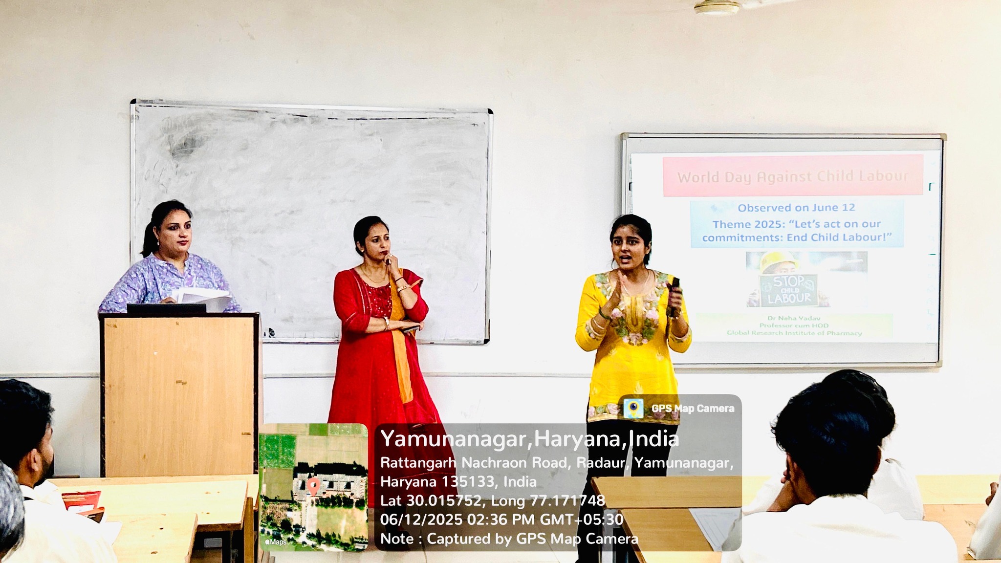 SHAPING OUR FUTURE: UNDERSTANDINGOn July 11, 2024, the Global Research Institute of Pharmacy hosted a seminar on “Shaping Our Future: Understanding the Impact of Population Growth on National Development” for B. Pharmacy students. Ms. Neha Saini and Mr. Jagdeep Singh led the event, discussing the impact of population growth on resources, economy, healthcare, and education. The seminar included a brainstorming session, encouraging students to think critically and develop innovative strategies for sustainable development and population management.