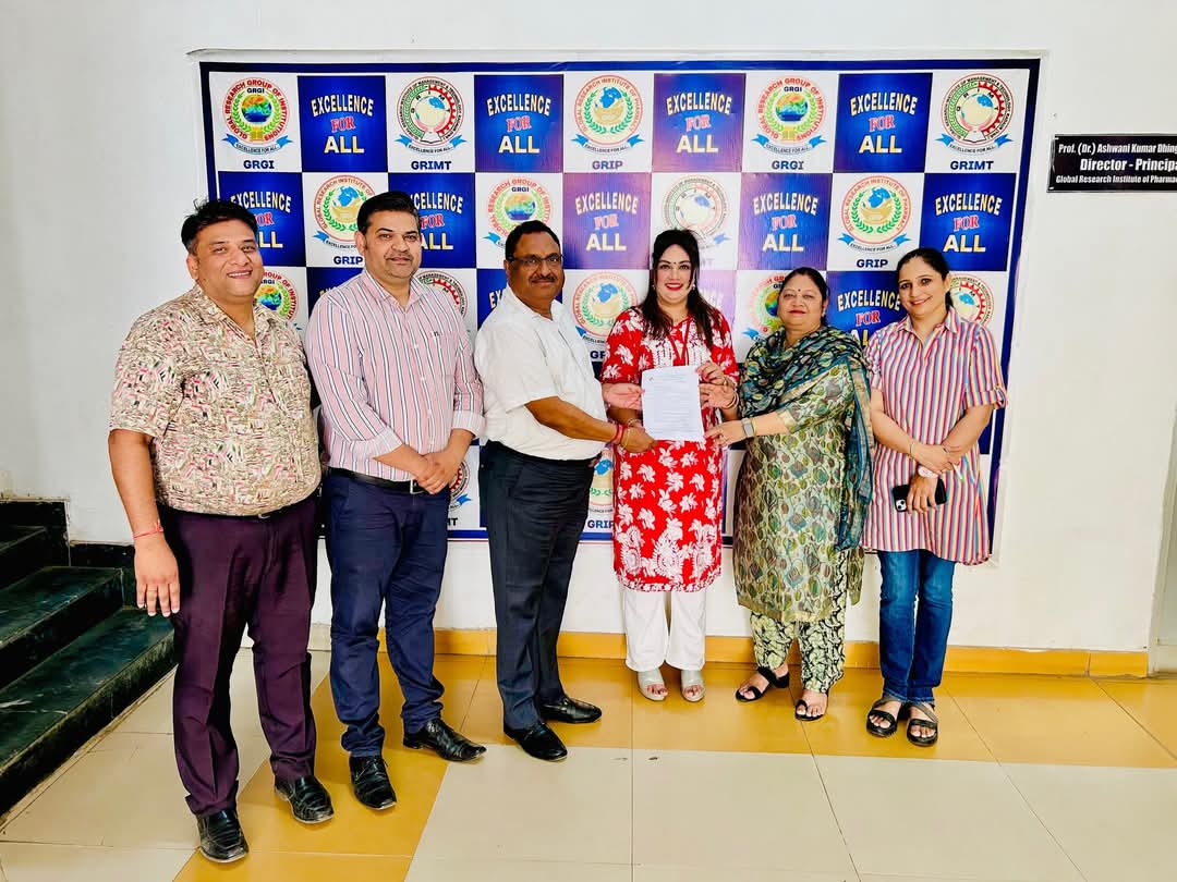 Congratulations Dr. Neha Yadav, Professor, GRIP on receiving the grant of INR 50,000/- from Haryana State